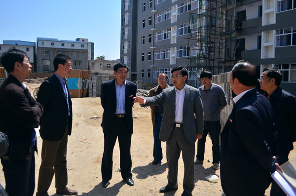领导一行首先来到8#、9#宿舍楼施工现场,逐一了解房间分布、功能设施、施工程序等情况,要求施工单位与各配合部门抓紧工期,务必在5月31日前完工,新学期开学前投入使用,为学生创造良好的入住条件。