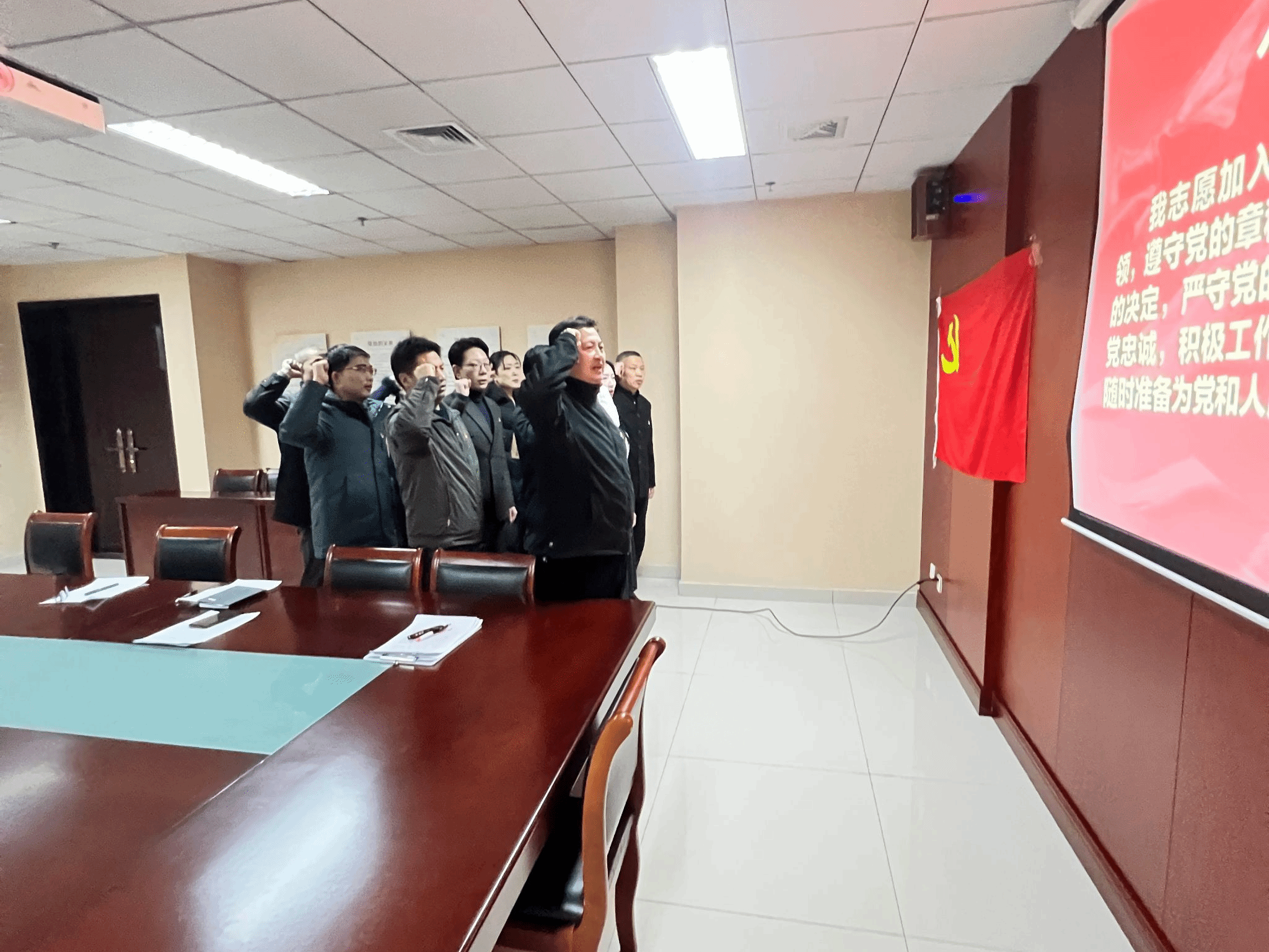 活动现场,氛围庄重肃穆。10位党员整齐列队,目光坚定地聚焦在鲜红党旗下。宣传委员李武伟身为领誓人声音洪亮,带领新党员庄严宣誓,老党员也一同重温入党誓词。激昂誓言在会议室回荡,每位党员都以饱满精神,展现出对党的忠诚以及为共产主义事业奋斗的决心。