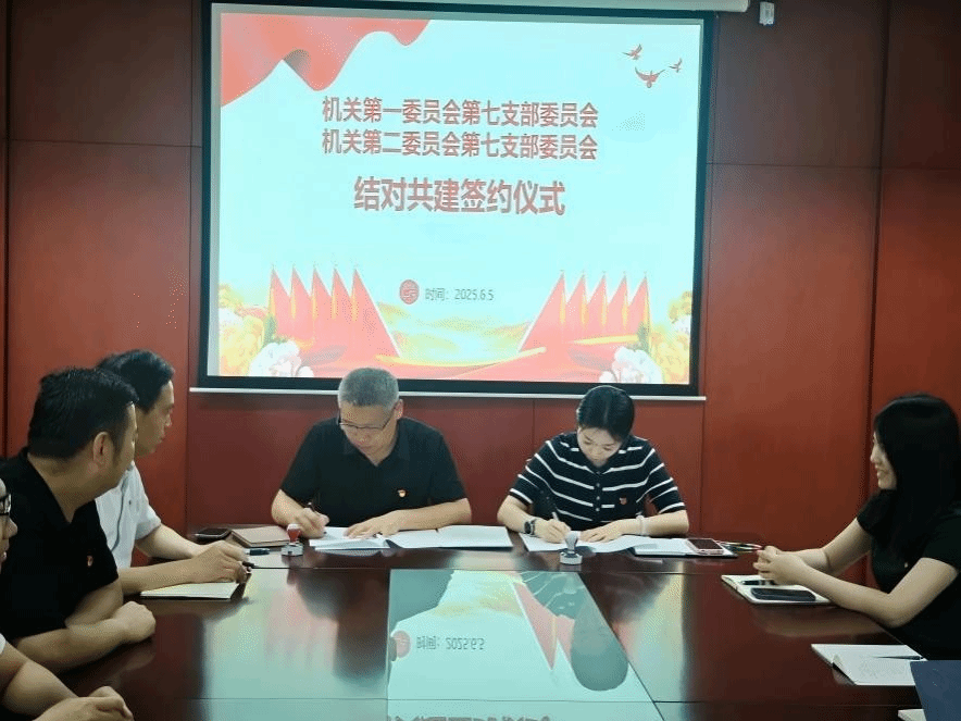 为深入贯彻落实党的二十大精神,强化基层党组织建设,推动党建与业务深度融合,6月5日,机关第一党委第七支部与机关第二党委第七支部在综合楼十二楼第二会议室举行党组织结对共建签约仪式,开启了党建工作协同发展的新篇章。