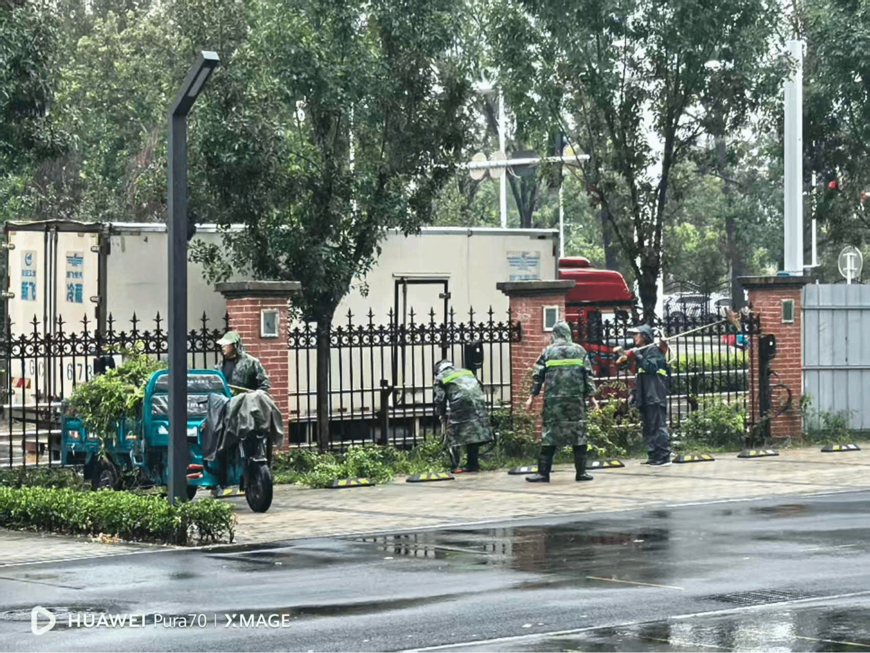 近日,郑州持续降雨,雨水裹挟落叶、泥沙等杂物堆积在家政楼周边及绿化带内。这不仅破坏校园环境美观,还存在堵塞排水口、影响绿植生长的隐患。为及时化解问题、守护校园绿化,基建处员工冒雨开展家政楼周边清洁维护工作,以责任与坚守为校园筑牢 “绿色屏障”。